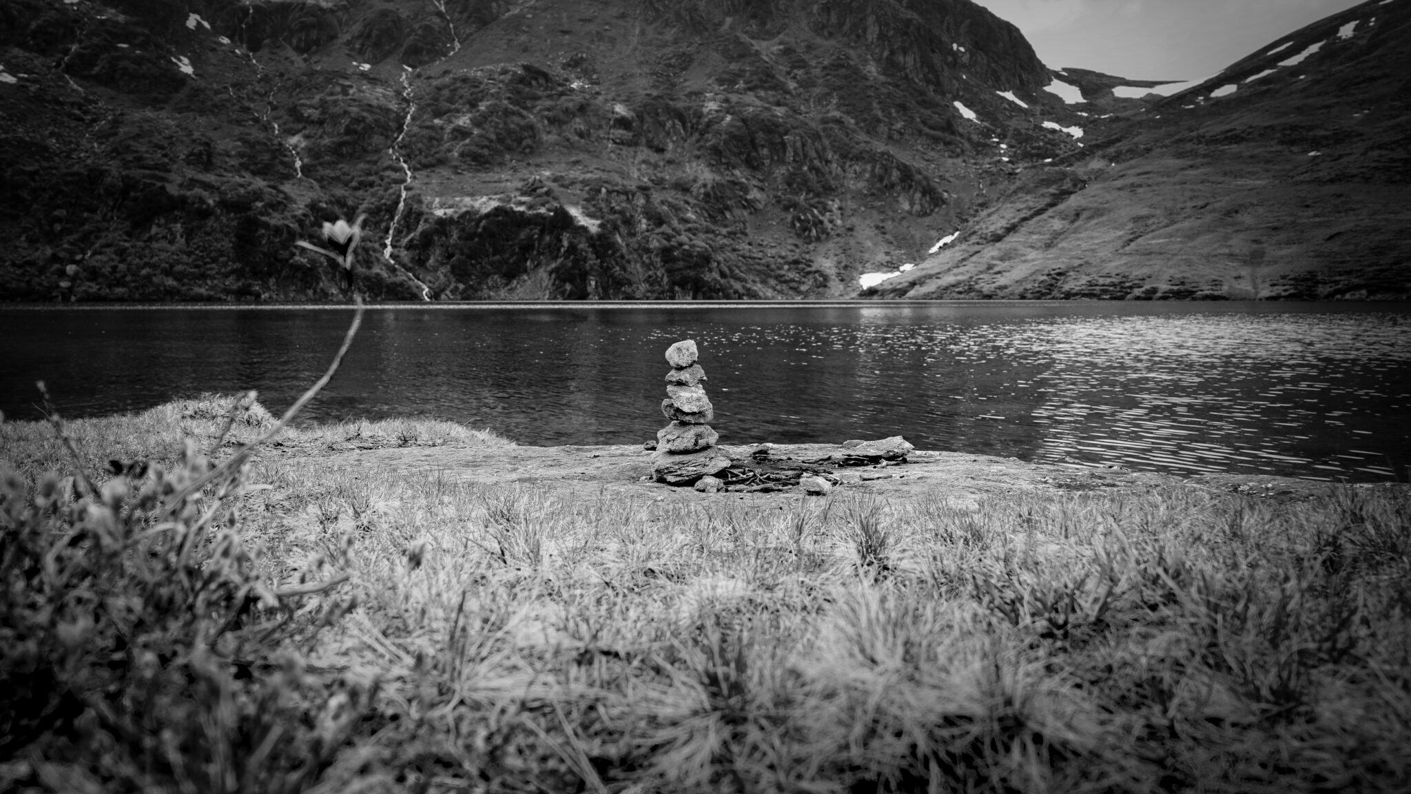 The lap of lake water against